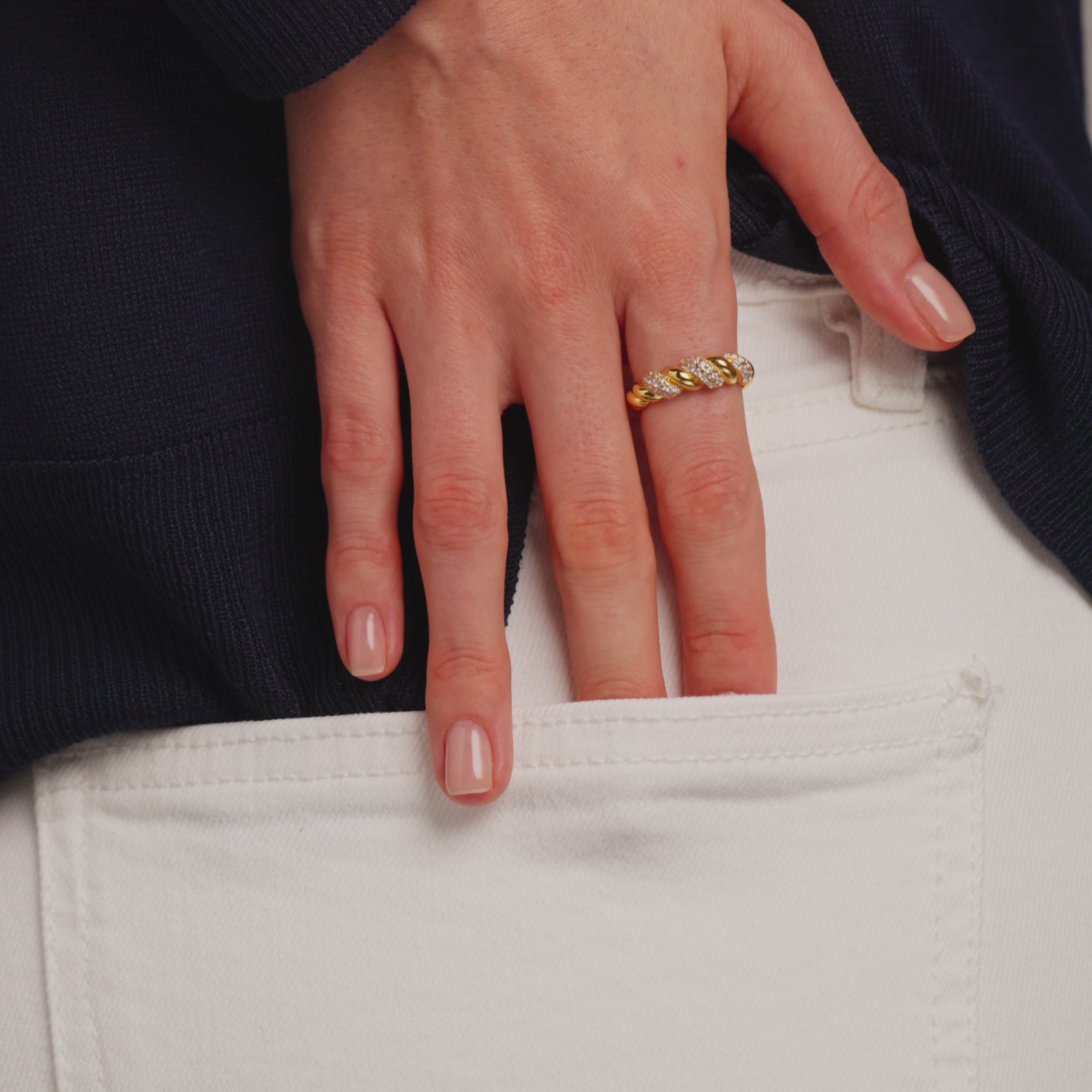 A fluid twist of silver orbiting your finger. For the woman who creates beauty from chaos—and always moves forward with strength.