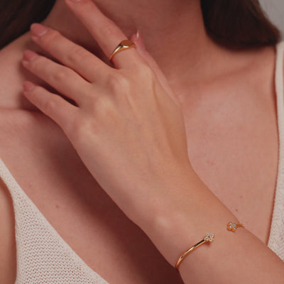 Crafted with care, our vermeil features a substantial layer of 18k gold over sterling silver. Each piece offers the rich warmth of real gold, made more accessible. We use 95% recycled sterling silver as the base, elevating both quality and sustainability.